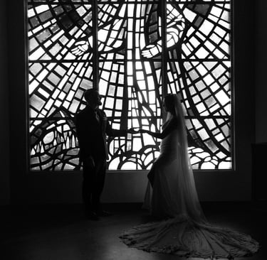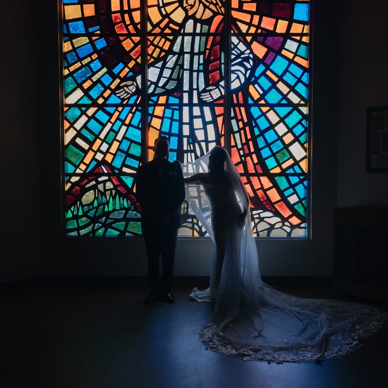 Ana and Alex’s wedding was held at the Oak Park Christian Center, where I had full creative control over the lighting of the venue. The beautiful 100-year-old oak tree at the entrance provided a majestic, natural focal point, while the stained glass window in the Choir Room allowed for dramatic silhouette portraits. Their ceremony was intimate, heartfelt, and filled with love. Although I was only present for the ceremony, I captured moments of joy, quiet connection, and the unique details that made their day unforgettable. Their reception continued in their new home, reflecting their personal style and warmth.