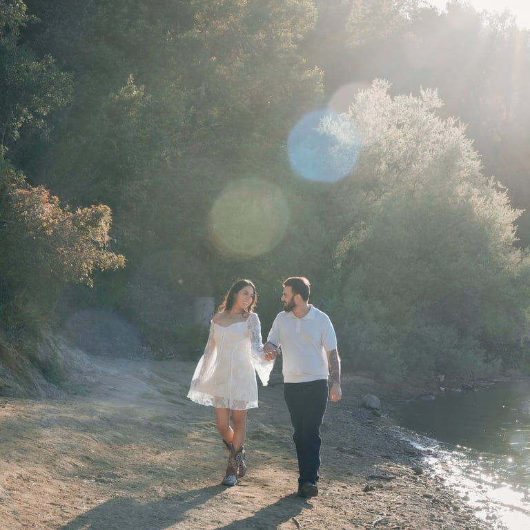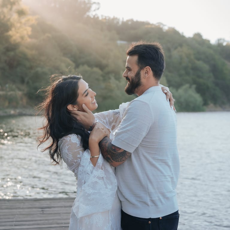 For their engagement session, Ana and Alex chose the dock at Lake Chabot. Angelic light bathed the water behind them, creating a soft, romantic glow. We captured the natural chemistry between them through both posed portraits and candid moments, from shared laughter to quiet, intimate glances. The serene lakeside setting and golden light created images that are timeless, elegant, and filled with emotion.